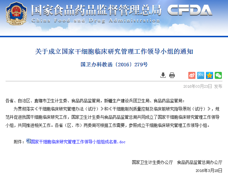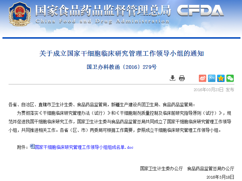 各省、自治區(qū)、直轄市衛(wèi)生計生委、食品藥品監(jiān)管局,新疆生產(chǎn)建設兵團衛(wèi)生局、食品藥品監(jiān)管局:為貫徹落實《干細胞臨床研究管理辦法(試行)》和《干細胞制劑質(zhì)量控制及臨床前研究指導原則(試行)》,規(guī)范并促進我國干細胞臨床研究工作,國家衛(wèi)生計生委與食品…